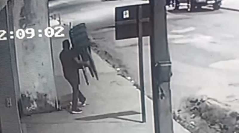 Nas imagens, dois homens pegam as cadeiras e colocam em um veículo Hilux, que estava estacionado no outro lado da avenida, trecho urbano da CE-060. Após o crime eles seguiram em direção à cidade de Farias Brito.