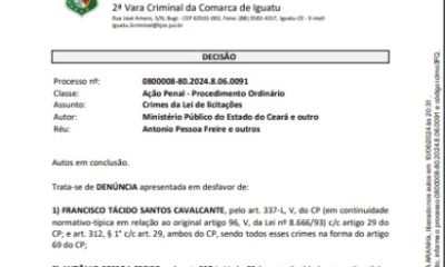 Iguatu2 semanas atrásIGUATU – PRESIDENTE DO CONSELHO MUNICIPAL DE EDUCAÇÃO É DEMITIDO APÓS CONDENAÇÃO POR FALSIFICAÇÃO DE DOCUMENTOS