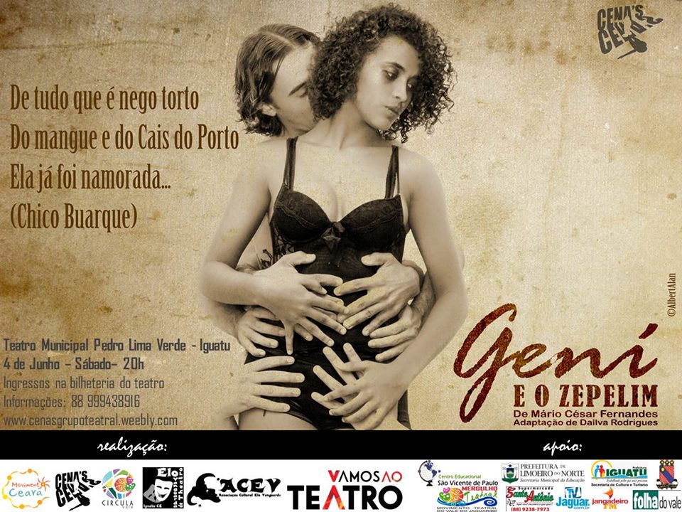 O espetáculo ‘Gení e o Zepelim’ do Grupo Cena’s de Limoeiro do Norte estará presente na programação.