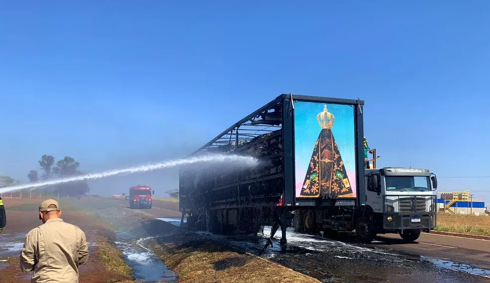 Uma carreta carregada com fardos de algodão pegou fogo, na manhã desta quinta-feira (28), na Rodovia Federal 267, em Bataguassu (MS). Apesar das chamas terem consumido...