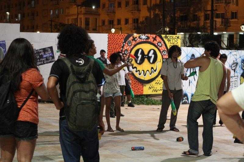 Estão reunidos no entorno da obra do Acquário Ceará um grupo de pessoas que tem por objetivo debater as consequências da construção do empreendimento.