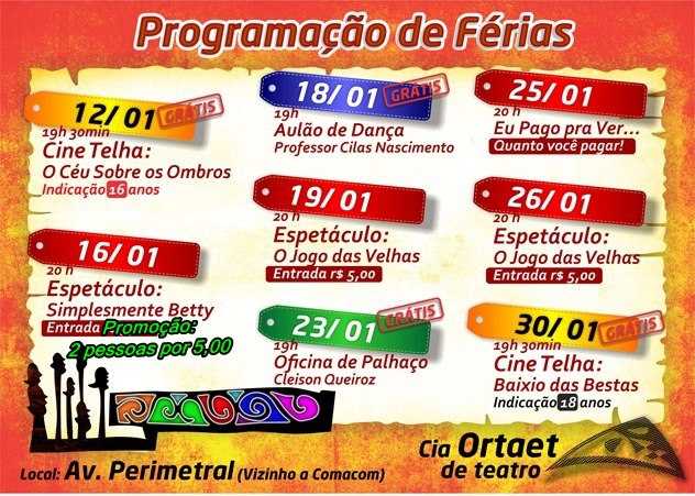 A Cia Ortaet de Teatro dá continuidade à programação especial de férias, que iniciou no dia 12 e segue até o dia 30 de janeiro.