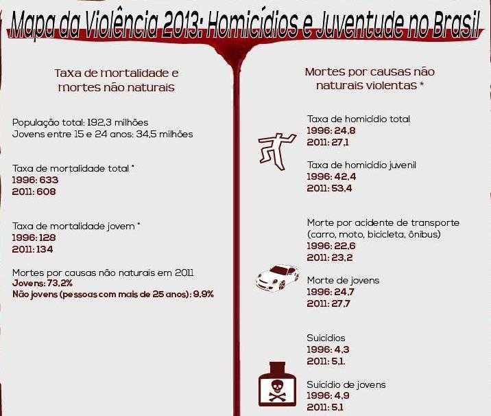 [caption id="attachment_4688" align="alignleft" width="716"]Foto: Reprodução[/caption]A violência contra os jovens brasileiros aumentou nas últimas três décadas de acordo com o Mapa da Violência 2013: Homicídio e Juventude...
