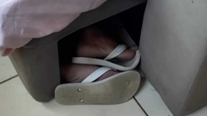 Um foragido da Justiça tentou se esconder da Polícia embaixo de um sofá, mas foi descoberto pelos pés que ficaram de fora. O fato aconteceu em...