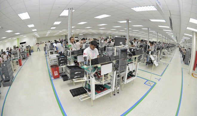 Para preparar uma caixa de telefone celular com carregador de bateria, fone de ouvido e dois manuais de instrução, o empregado da fábrica da Samsung localizada...