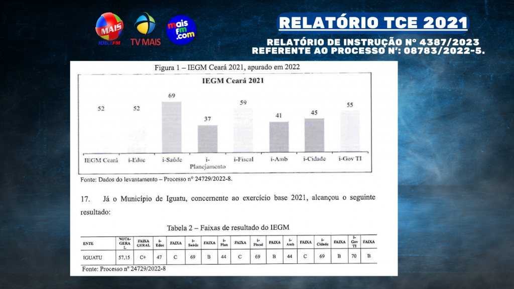 O município de Iguatu, no Ceará, enfrenta sérias irregularidades em suas contas referentes ao exercício de 2021, conforme apontado em um relatório de prestação de contas. O documento, essencial para subsidiar o Parecer Prévio, revela uma série de problemas que exigem a atenção imediata das autoridades responsáveis. Tivemos acesso ao Relatório de Instrução n° 4387/2023 FASE: Inicial, referente ao PROCESSO N’: 08783/2022-5.