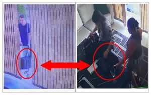 A sequência abaixo mostra imagens do circuito interno de segurança e registra a presença do candidato