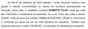 Imagens do circuito interno mostram entrada e saída frequente de pessoas ligadas à campanha de Roberto Filho, distribuição de dinheiro em espécie, além de reuniões com militantes e coordenadores eleitorais
