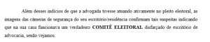 As imagens gravadas pelo DVR são consideradas provas essenciais, pois detalham a intensa movimentação no local, que funcionava, de acordo com depoimentos, como uma espécie de comitê eleitoral disfarçado. Entre os vídeos analisados, há registros de reuniões com Roberto Filho, distribuições de material de campanha e transferências de valores que indicam a prática de crimes eleitorais. Depoimentos colhidos de testemunhas e militantes também reforçam a tese de que Márcia Rúbia coordenava atividades eleitorais ilícitas a partir desse endereço.