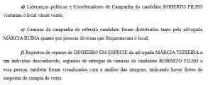 Conforme as apurações, Márcia Rúbia teria pago R$ 10.000,00 a Thiago Fumaça para garantir apoio no bairro Santo Antônio, área de forte influência do crime organizado. Esse acordo teria o objetivo de cooptar votos e fortalecer a presença de Roberto Filho na comunidade, onde Thiago Fumaça, além de atuar no tráfico de drogas e armas, tem controle sobre uma parcela da população. Em troca do pagamento, Thiago teria indicado um coordenador de campanha para o bairro, além de intermediar a contratação de militantes eleitorais, criando uma base de apoio político que beneficiaria a candidatura de Roberto Filho.